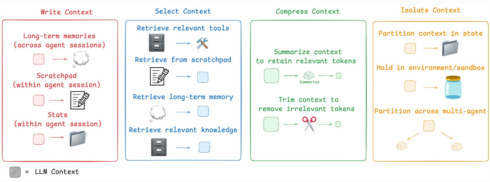 Successful context engineering usually involves four main strategies: